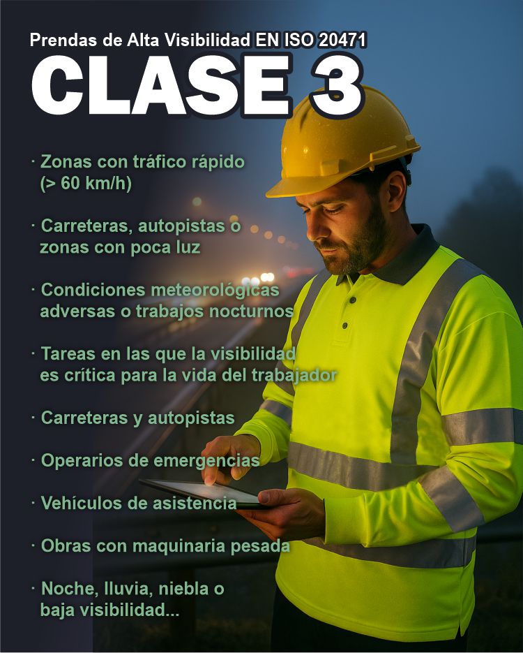 La Clase 3 es indispensable en entornos donde la visibilidad es crítica y el riesgo es elevado.