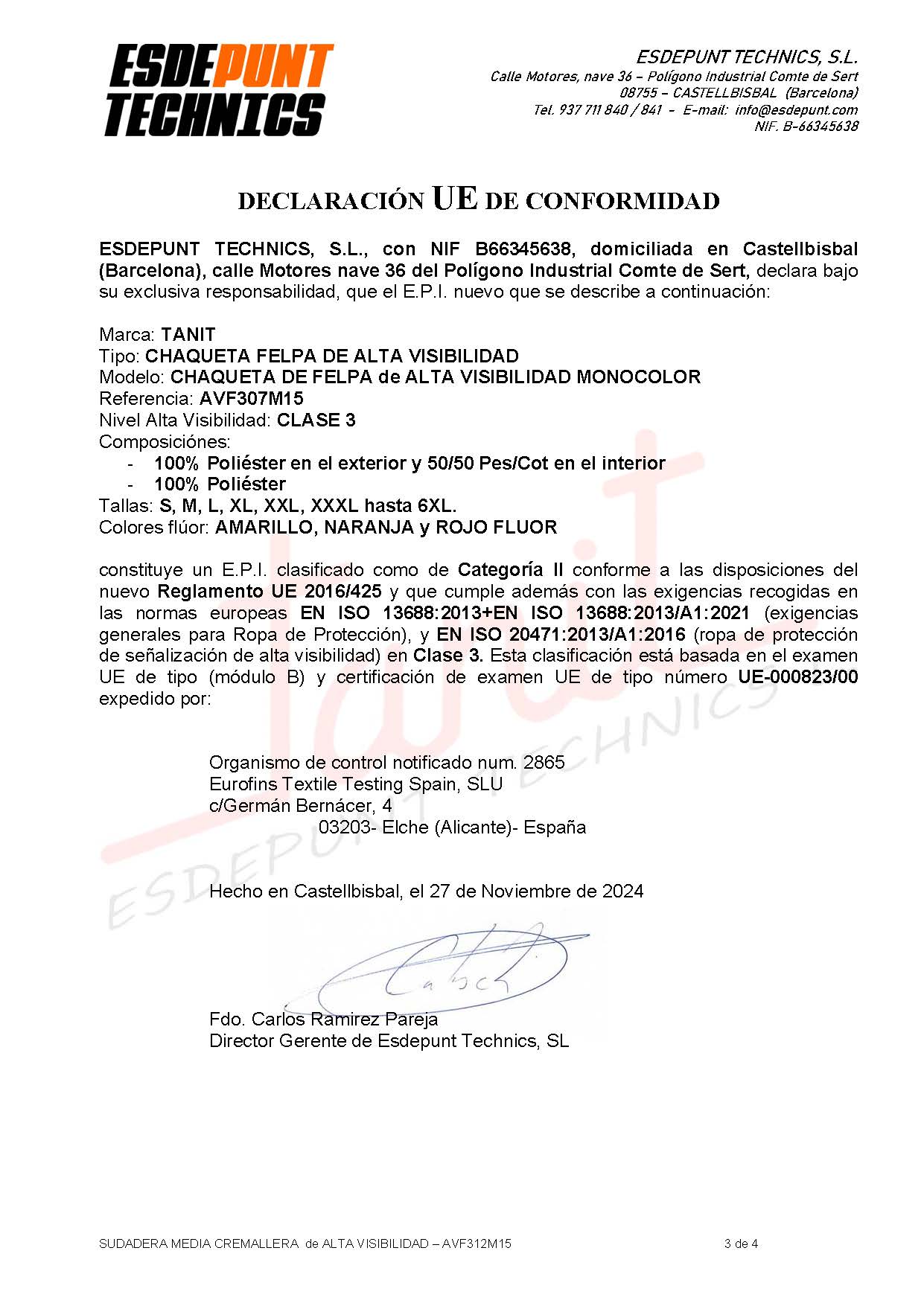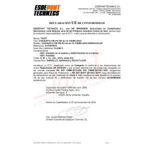Todos los Equipos de Protección Individual (EPI) que presentamos en este catálogo han sido fabricados teniendo en cuenta las exigencias esenciales de sanidad y seguridad contenidas en las normas europeas EN ISO 13688:2013+EN ISO 13688:2013/A1:2021 y en este caso, también la normativa EN ISO 20471:2013/A1:2016 para la alta visibilidad