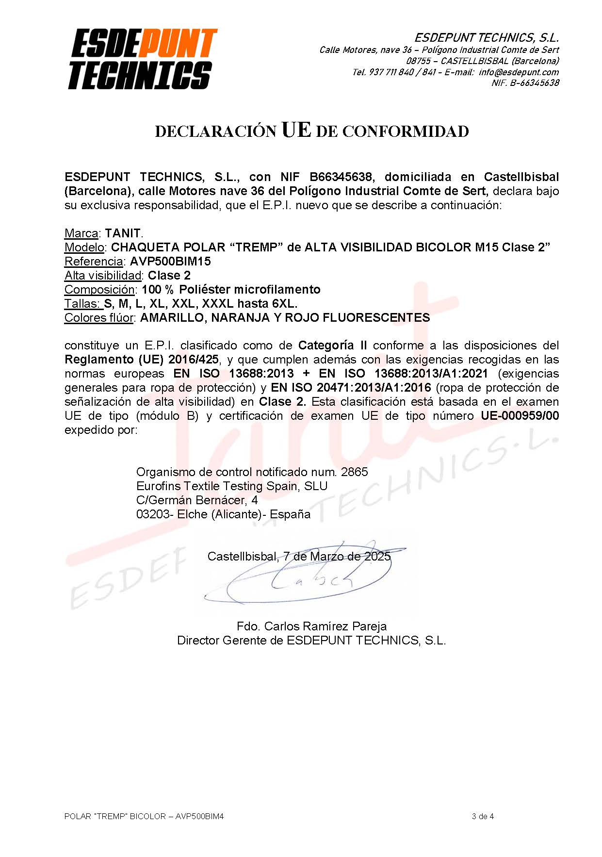 Todos los Equipos de Protección Individual (EPI) que presentamos en este catálogo han sido fabricados teniendo en cuenta las exigencias esenciales de sanidad y seguridad contenidas en las normas europeas EN ISO 13688:2013+EN ISO 13688:2013/A1:2021 y en este caso, también la normativa EN ISO 20471:2013/A1:2016 para la alta visibilidad