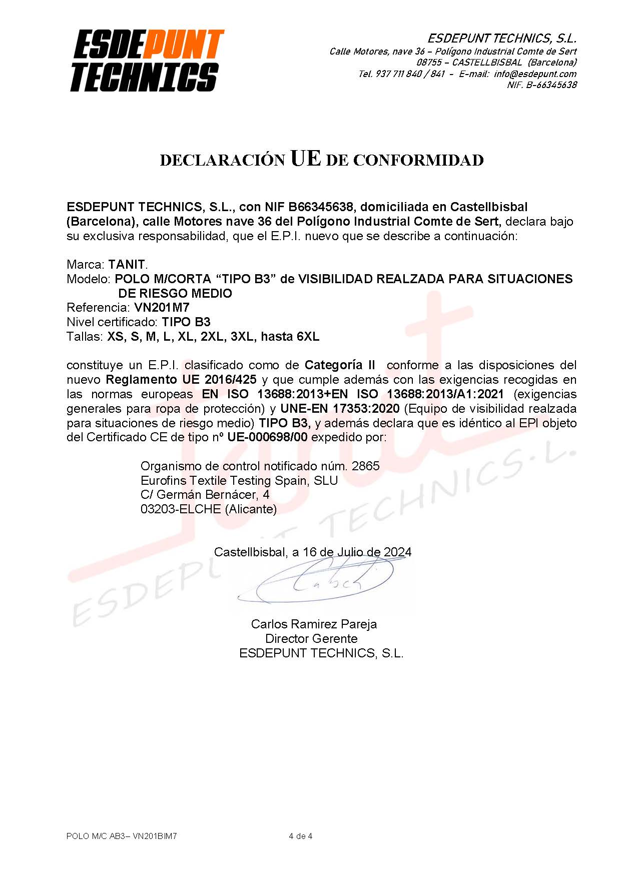 · Bandas reflectantes de 5 cm en tórax perimetral y mangas.