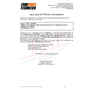 Todos los Equipos de Protección Individual (EPI) que presentamos en este catálogo han sido fabricados teniendo en cuenta las exigencias esenciales de sanidad y seguridad contenidas en las normas europeas EN ISO 13688:2013+EN ISO 13688:2013/A1:2021 y en este caso, también la normativa EN ISO 20471:2013/A1:2016 para la alta visibilidad