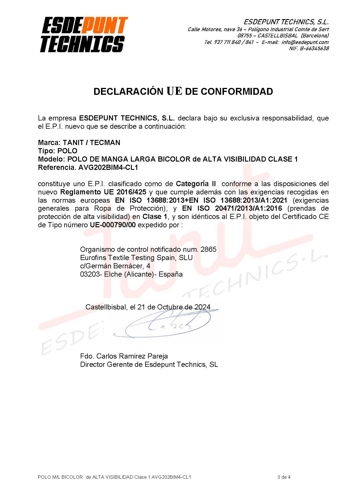 Todos los Equipos de Protección Individual (EPI) que presentamos en este catálogo han sido fabricados teniendo en cuenta las exigencias esenciales de sanidad y seguridad contenidas en las normas europeas EN ISO 13688:2013+EN ISO 13688:2013/A1:2021 y en este caso, también la normativa EN ISO 20471:2013/A1:2016 para la alta visibilidad