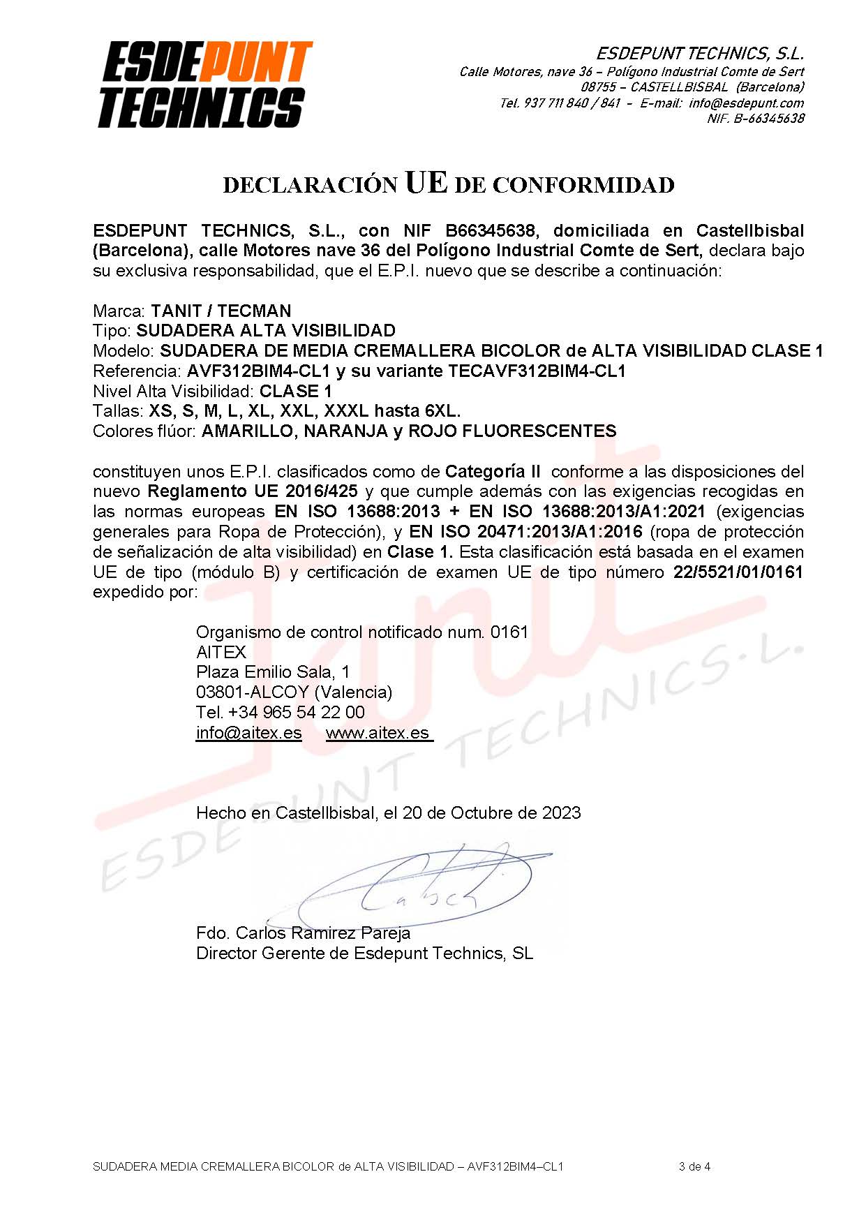 SUDADERA 1/2 CREMALLERA ALTA VISIBILIDAD BICOLOR M4 CLASE I