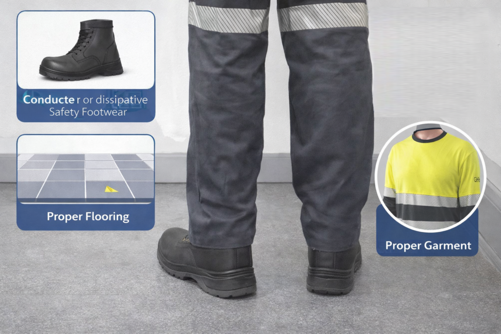 Para que la protección antiestática sea realmente efectiva, es importante entender que no depende únicamente de la prenda. Forma parte de un sistema completo de protección que incluye: